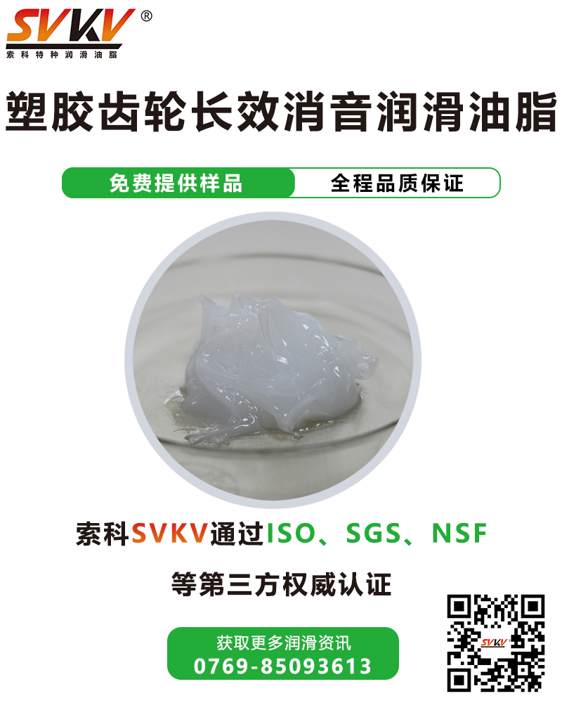 索科SVKV塑膠齒輪長效消音潤滑油脂選用高性能基礎(chǔ)油,并添加多種高效抗氧化、抗腐蝕等添加劑精制而成,是專為塑膠齒輪而研制。索科SVKV塑膠齒輪長效消音潤滑油脂能有效減少齒輪磨損,降低噪音,達到延長齒輪壽命的效果。