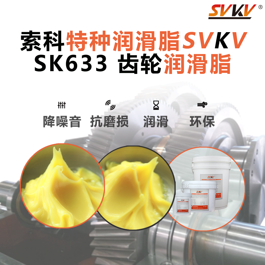 推薦索科SVKV SK633系列齒輪潤滑脂。減少齒輪磨損,降低噪音,達到長壽命和防水的效果。適用中低轉速的齒輪、軸承,塑膠/塑膠、金屬/塑膠的潤滑、消音、降電流等效果。