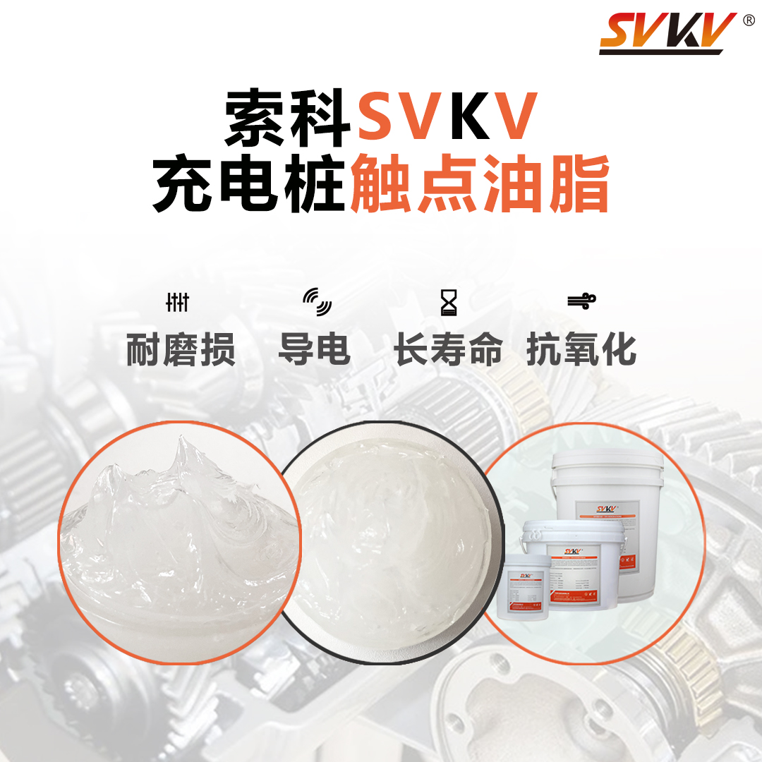 索科SVKV 909系列充電樁觸點潤滑脂由無機皂稠化非矽酮類合成油加超導電添加劑?抗氧化劑等精煉而成。SK系列開關觸點油脂專為電子電器的旋轉和滑動開關的防電弧?抗氧化?抗磨損和保護而設計,能有效降低接觸電阻和溫升,防止積碳的產生。