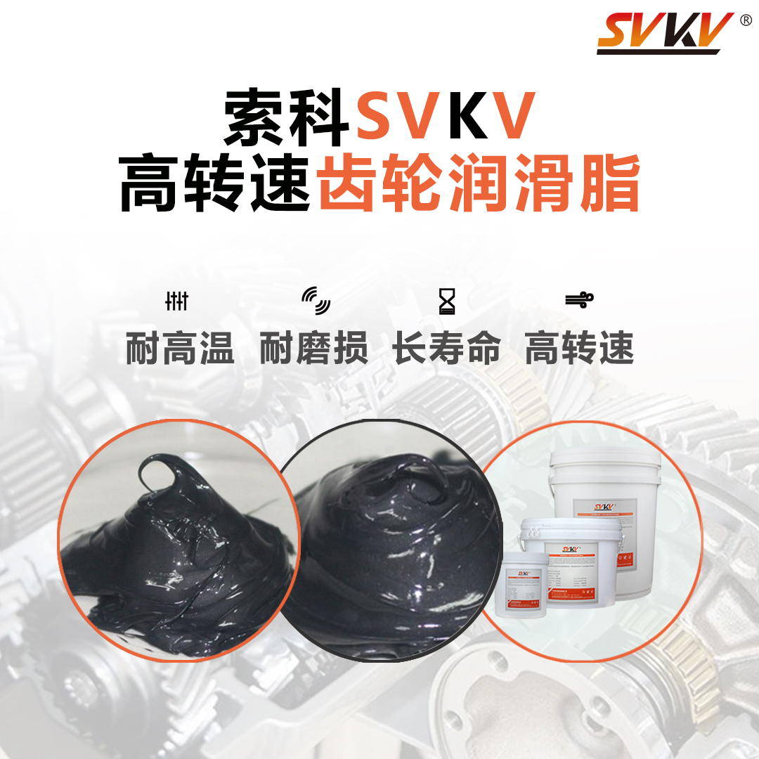 高轉(zhuǎn)速齒輪潤滑脂一般要求基礎(chǔ)油粘度適中或較小,油膜粘度較低,極壓性較低,主要是降低齒輪在高速下的運(yùn)轉(zhuǎn)扭矩。索科專門為高速高速齒輪研發(fā)了一款潤滑脂,索科SVKV941系列高轉(zhuǎn)速齒輪潤滑脂,能夠滿足齒輪潤滑需求,降低齒輪噪音延長壽命。