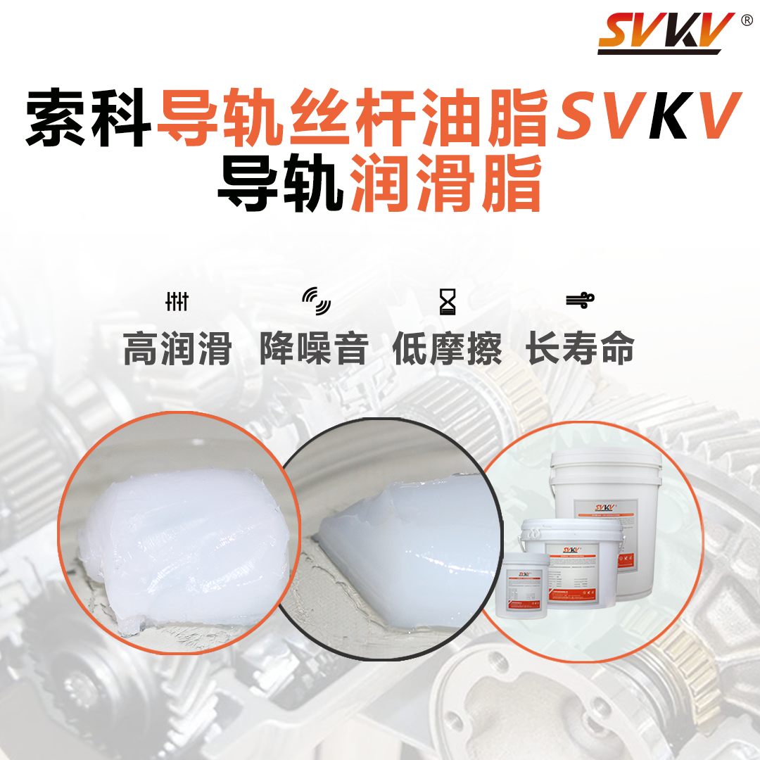 推薦索科SVKV SK820系列的導軌潤滑脂。由全合成基礎油和高性能復合稠化劑精煉而成,內含特殊的(EP)抗磨聚合物,具有優良的高速潤滑性和承載能力。